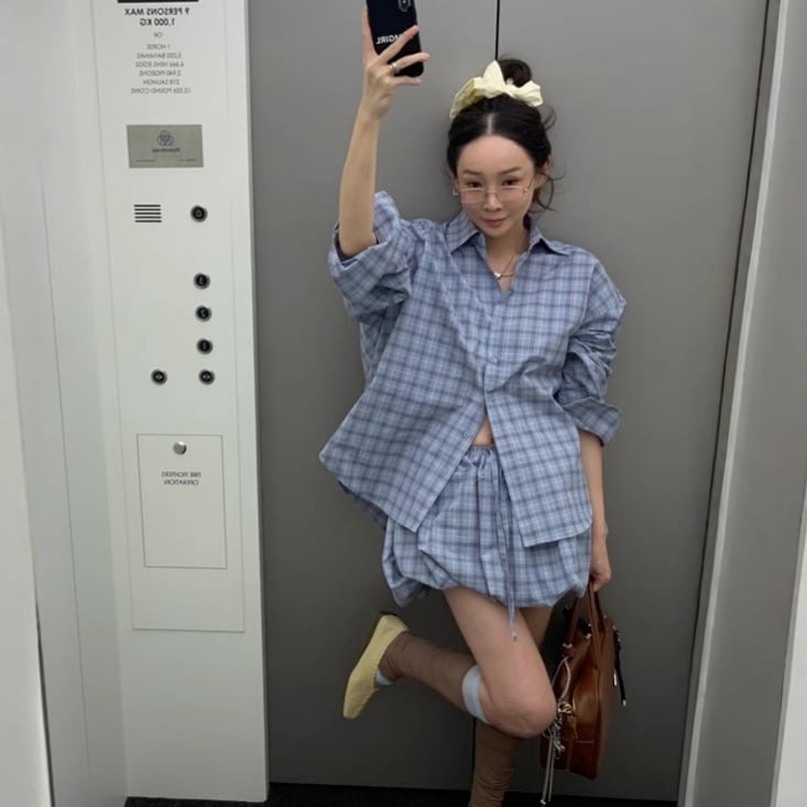 トレンドと可愛さを✤ チェックシャツ×ショートパンツ 全2色 【3-4週間で到着】