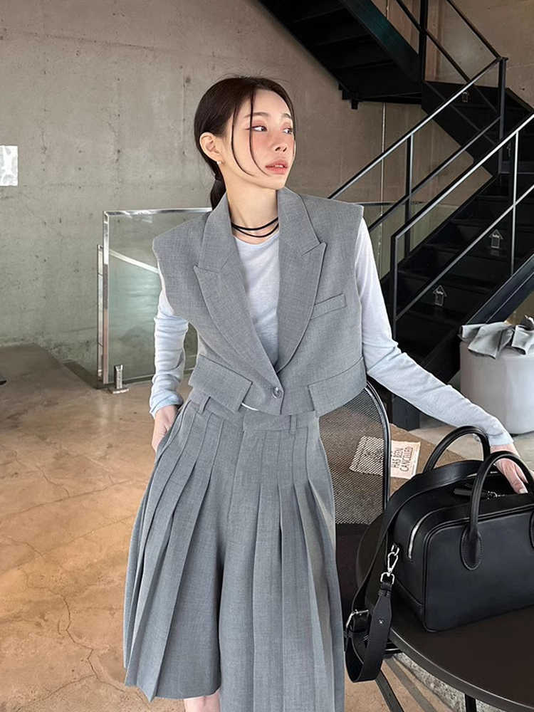 かっこいい女性のために✤ ベスト×プリーツハーフパンツセットアップ 全2色
