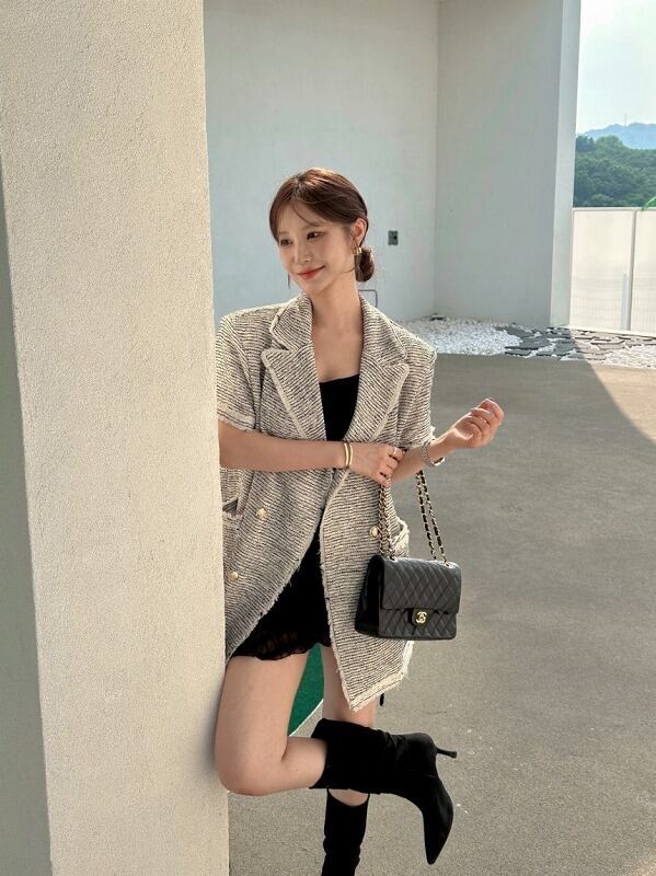 ツイードジャケットだと珍しい丈感で差がつく✤
