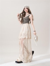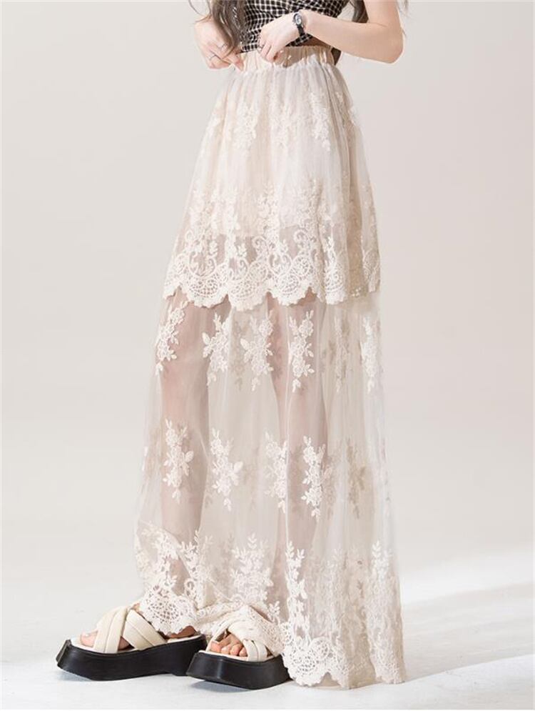 スタイルアップ効果&華やかに✤ レースシースルーロングスカート 全1色
