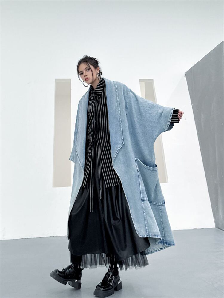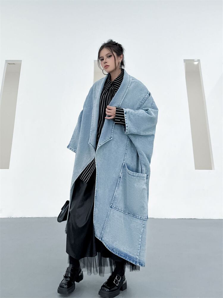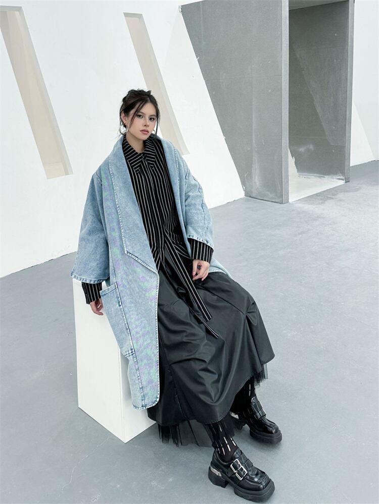 海外ガール デニム ジャケット デート お出掛け 無地 ロング丈