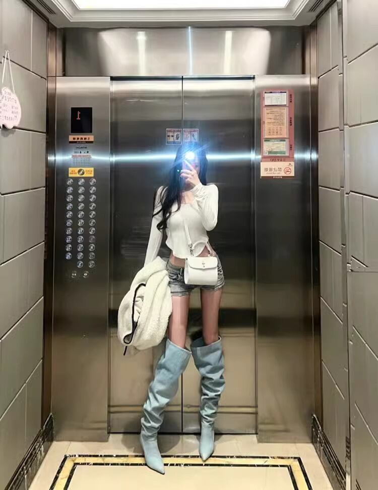 海外ガール,ブーツ,デニム,デート,お出掛け,トレンド,冬,ロングブーツ,モテ服