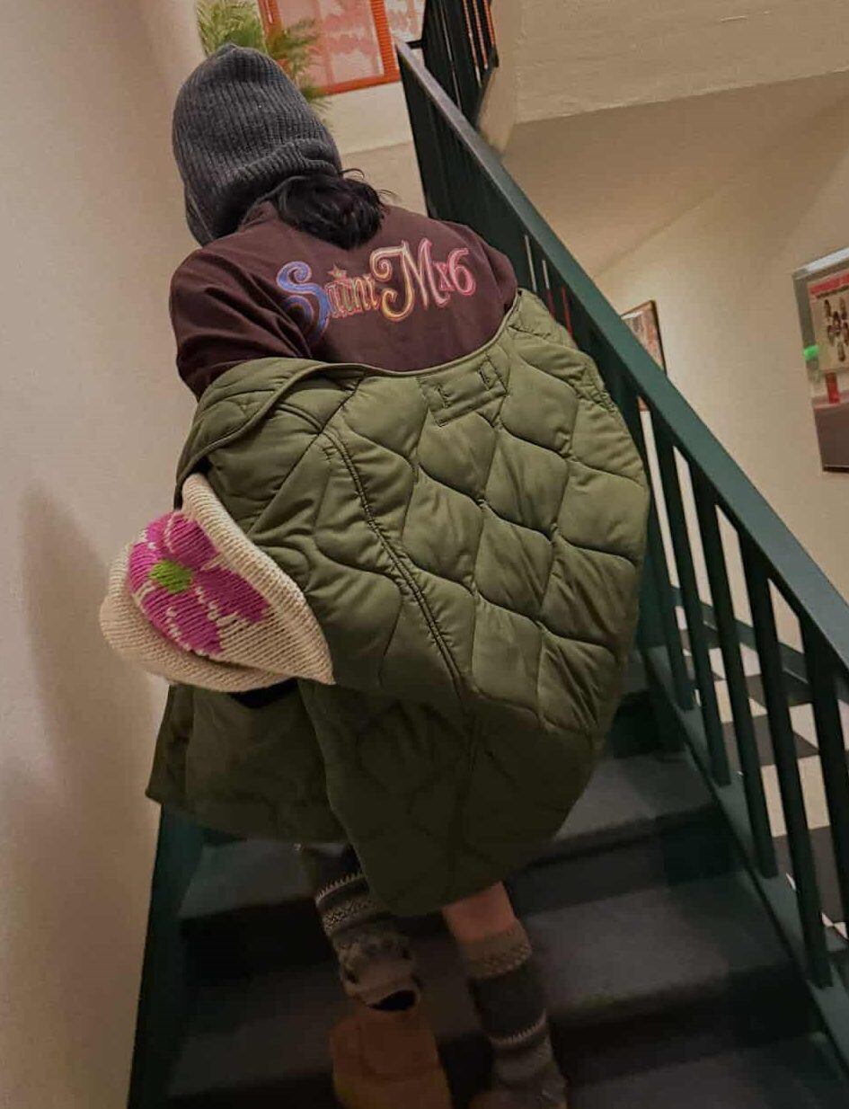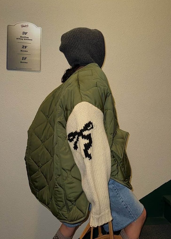 海外ガール,アウター,ニット,デート,お出掛け,トレンド,冬,ブルゾン,モテ服