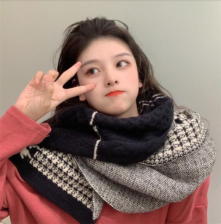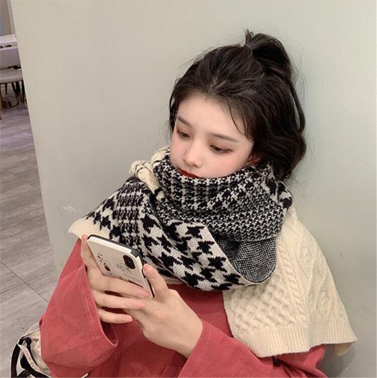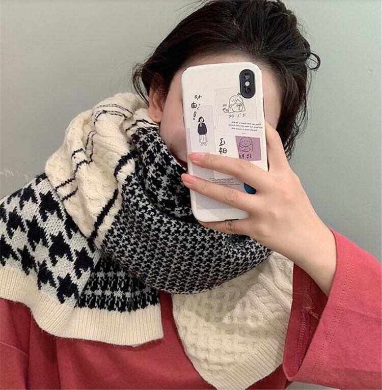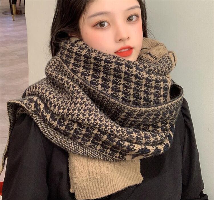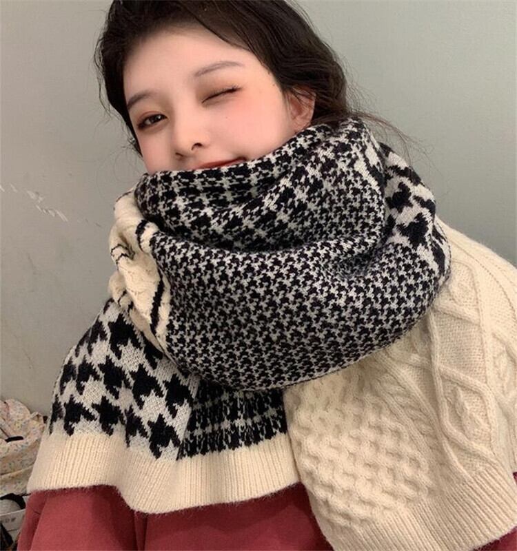 海外ガール,マフラー,ニット,デート,お出掛け,トレンド,アクセサリー,トレンド,千鳥柄