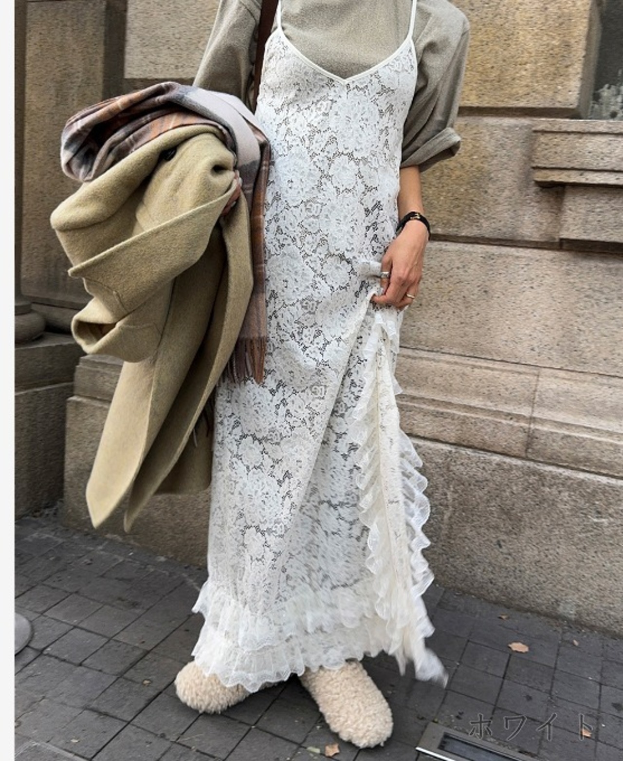 揺れる華やかを✤ レースフリルキャミソール 全1色